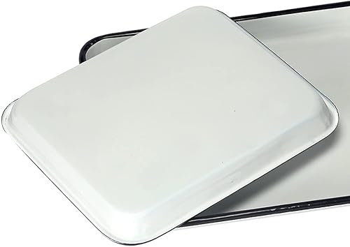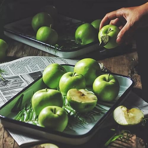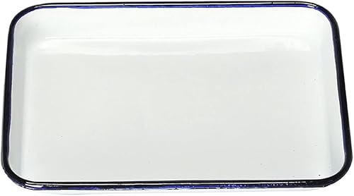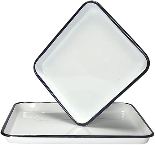 1 plateau vintage fabriqué à la main en émail blanc pour la maison, les gâteaux, les fours, les assiettes carrées rétro (16 cm x 22 cm x 3 cm)