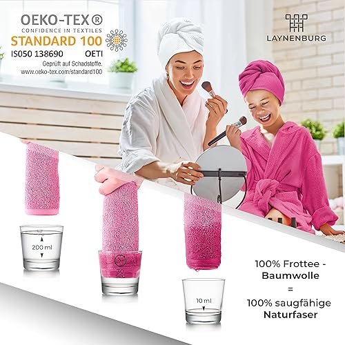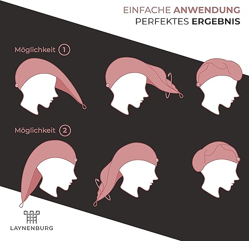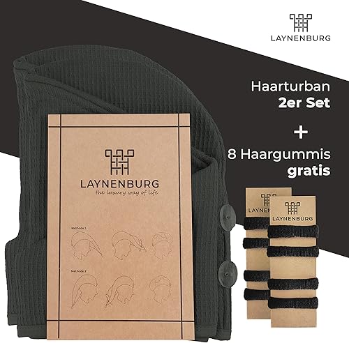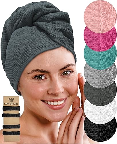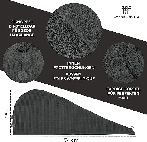 LAYNENBURG Lot de 2 Turban de qualité supérieure - 2 Boutons - 100% Coton Serviette en piqué gaufré & Tissu éponge - Bouton de Serviette pour Cheveux Courts et Longs - séchage Rapide (Antracite)