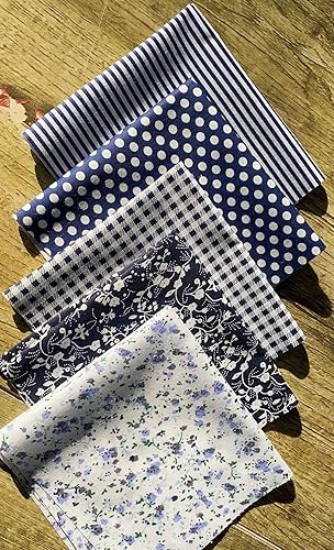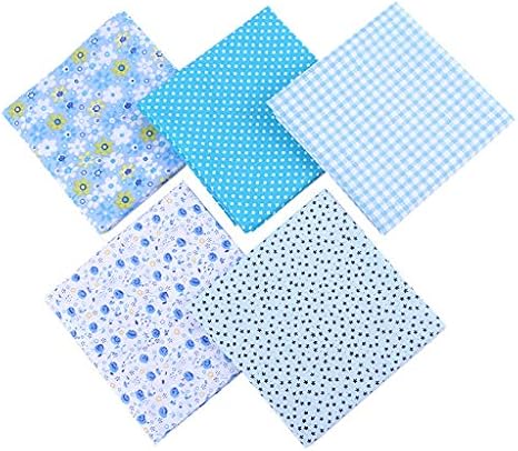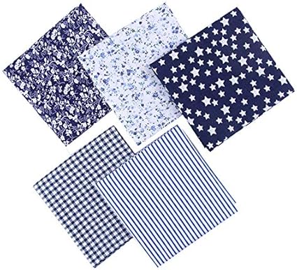 Lot de 5 tissus en coton 50 x 50 cm pour patchwork DIY - Tissu en coton - Pour couture faite à la main - Pour vêtements de bricolage, taies d'oreiller, linge de lit, rideaux, nappes - Bleu foncé