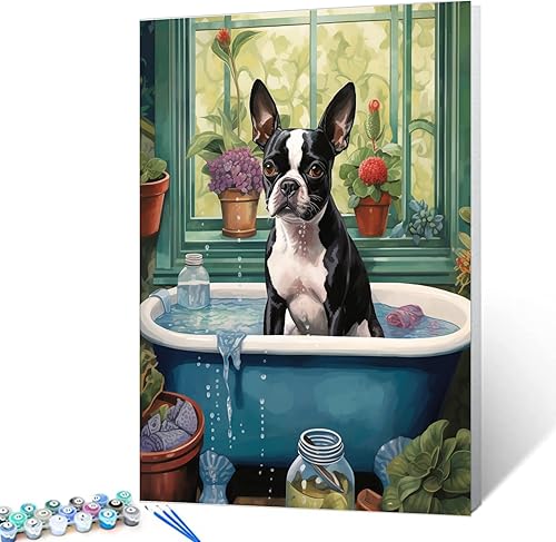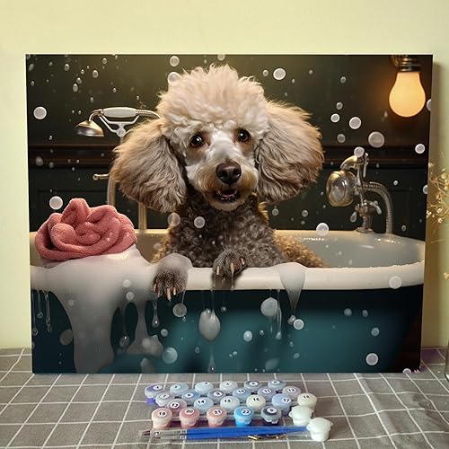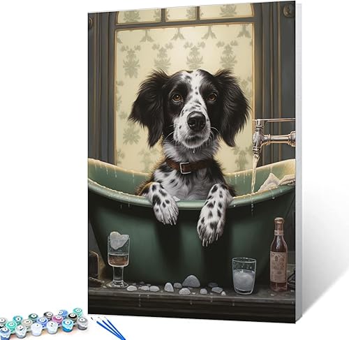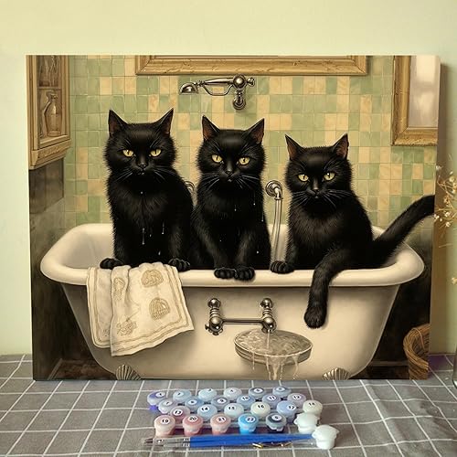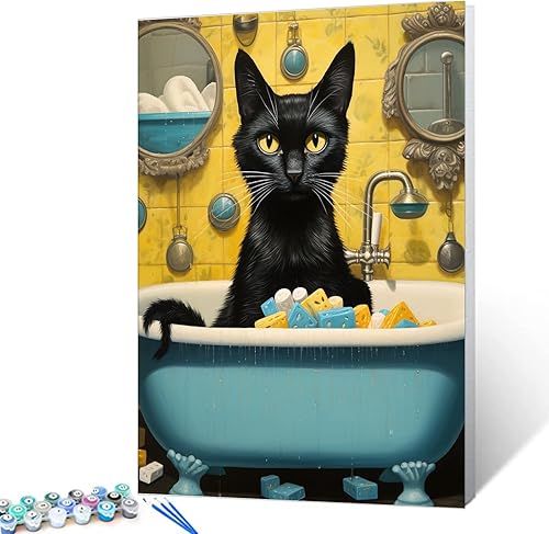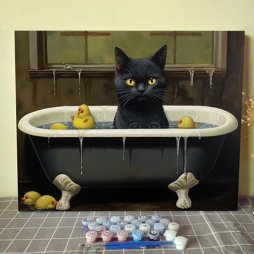Kit de peinture par numéro pour adultes, animaux de salle de bain, chat, bain, kit de peinture acrylique à faire soi-même pour décoration murale d'intérieur, chambre à coucher, 40,6 x 50,8 cm (cadre à