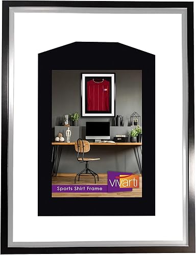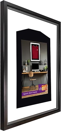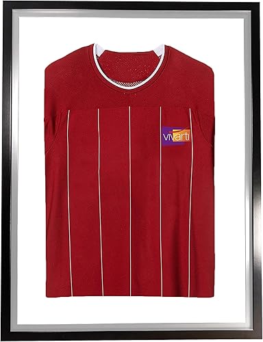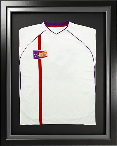 Vivarti Cadre d'affichage standard pour maillot de football, maillot de rugby, t-shirt de bande, boîte d'ombre – 60 x 80 cm – cadre noir, cadre intérieur doré, dos noir
