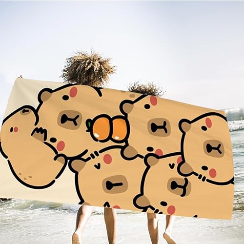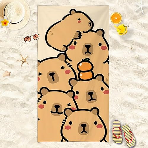 MEZHEN Serviette de Plage Microfibre Capybara Serviettes Séchage Rapide Ultra Absorbant Serviette de Plage Enfant Couverture de Plage PiscineVoyage Camping