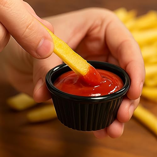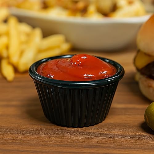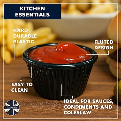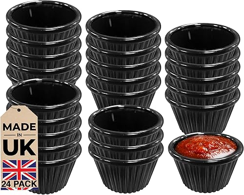 Chabrias Lot de 24 Ramequins Individuels Cannelés en Mélamine pour Condiments, Sauces, Bols à Sauce, Pots à Sauce en Plastique Robuste, Fabriqués en Angleterre (Noir, 56,7 g)