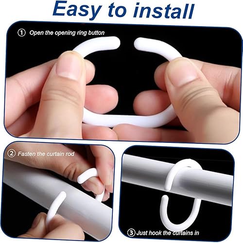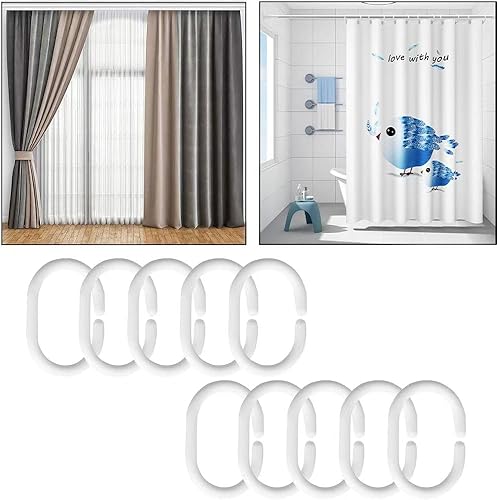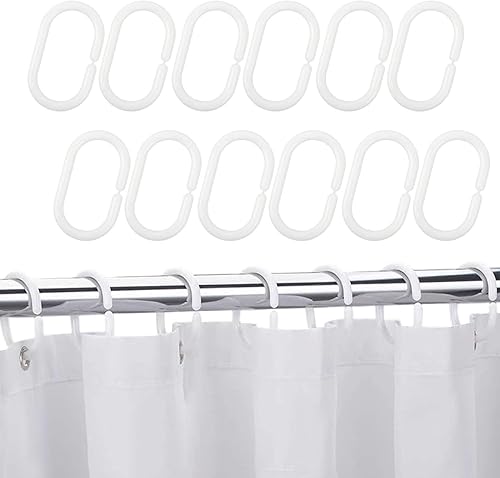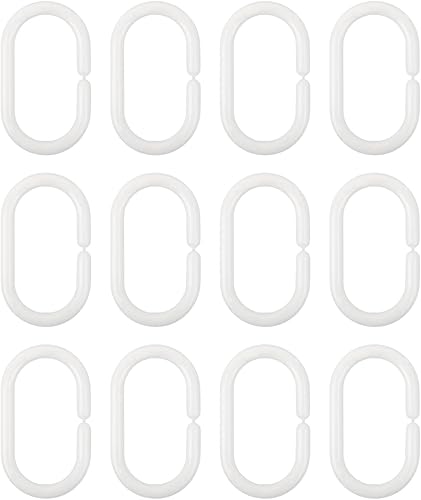 Lot de 12 anneaux de rideau de douche, en plastique robuste, en forme de C, pour la maison, l'hôtel, la salle de bain, la douche (couleur : blanc)