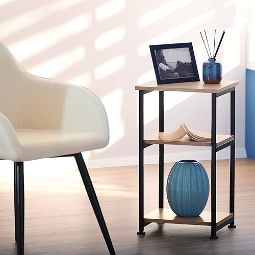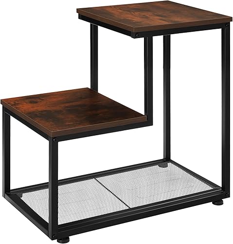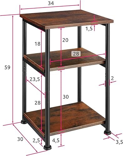 TecTake Table d’appoint Industrielle Table Basse Bout de canapé Tables de Salon avec 2 Surfaces de Rangement Bois MDF – diverses Couleurs (Bois foncé Style Industriel)