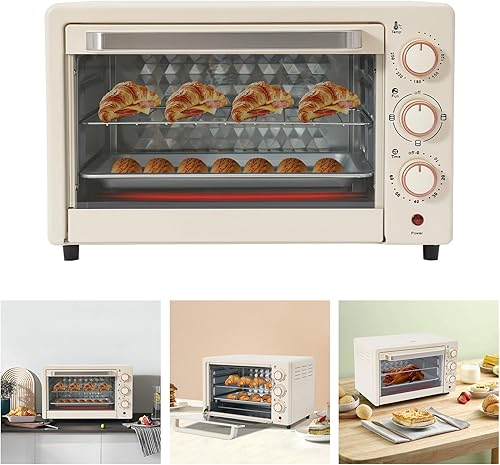 Mini four électrique, 22 l, avec poêle et grille, minuterie de 60 min, four à pizza, 1000 W, 120-250 °C, pour familles, fêtes, barbecues, snacks, desserts