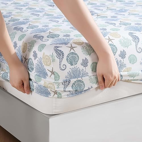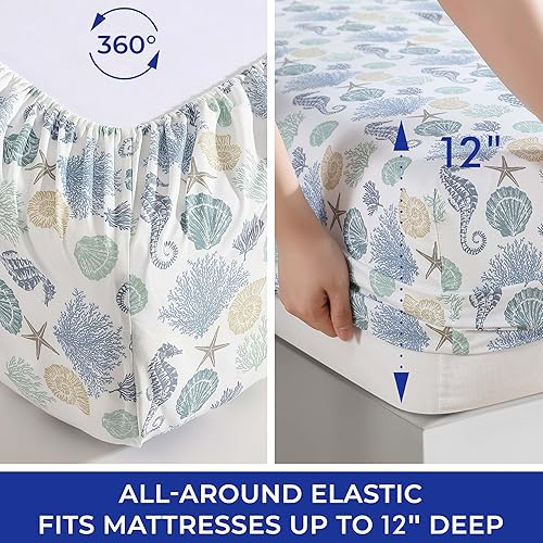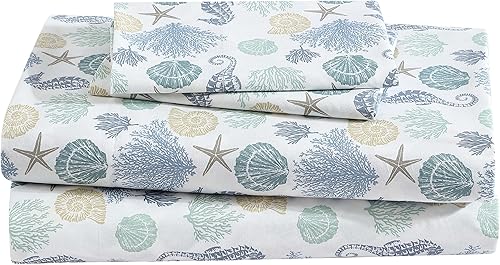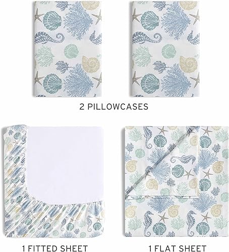 Beatrice Home Fashions Parure de lit en Microfibre à imprimé côtier, Douce et Confortable, Poches Profondes de 30,5 cm, Grand lit, Briella