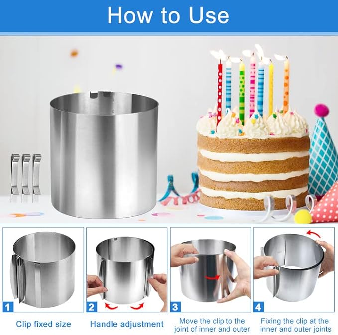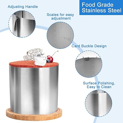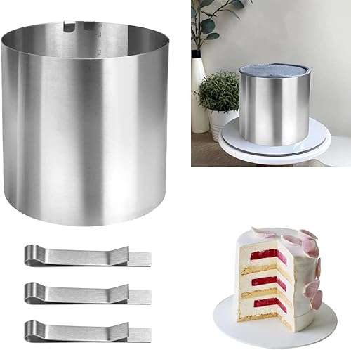 THATSRAD Anneau à Gâteau Réglable 16-30cm Anneau à Gâteau en Acier Inoxydable Moule Cercle à Gateau 15cm Cercle a Gateau Reglable Cercle a Gateau Rond Cercle à Pâtisserie Extensible avec 3 Clips