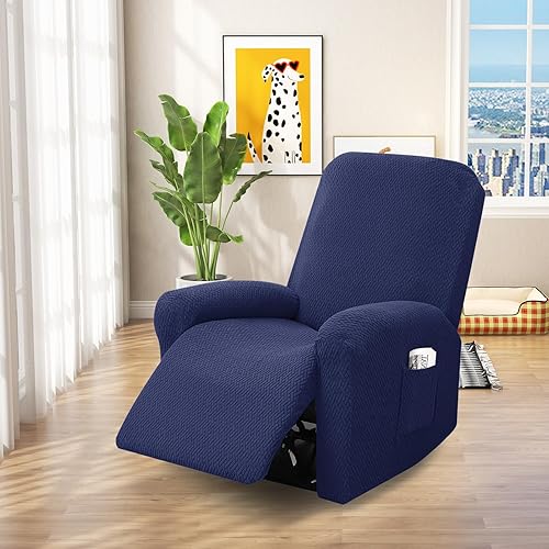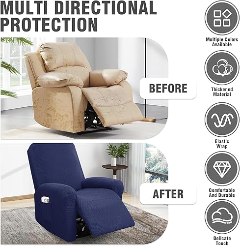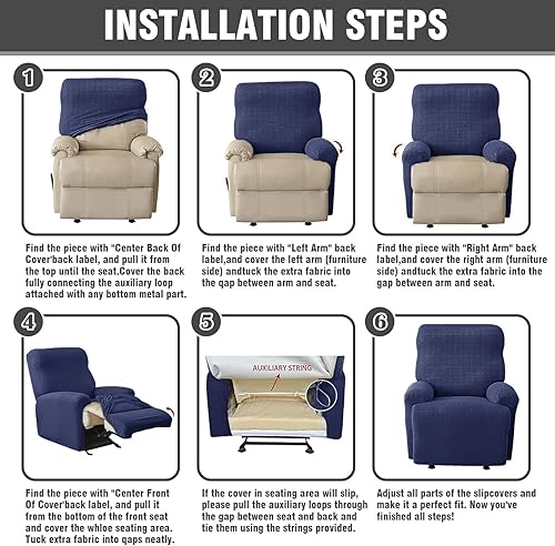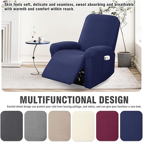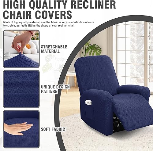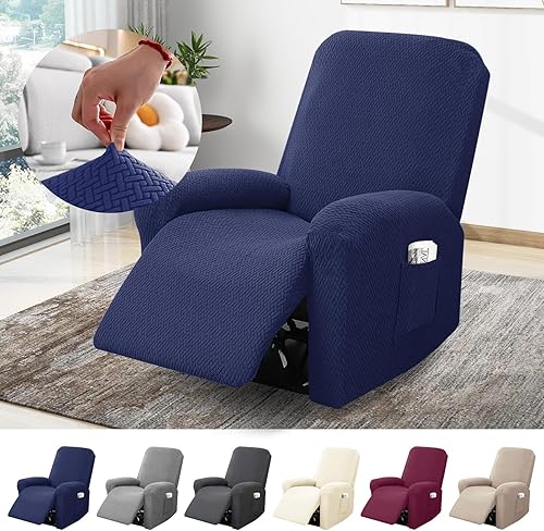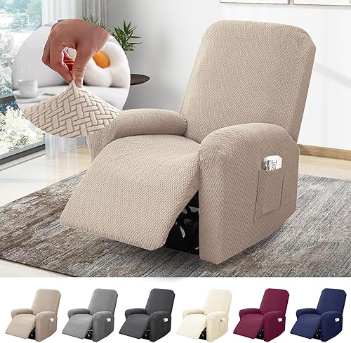 BOYIFEIJIE Housse de fauteuil 1 place extensible avec poches, tout compris - En jacquard à rayures - Pour fauteuil relax - Taupe - 4 pièces