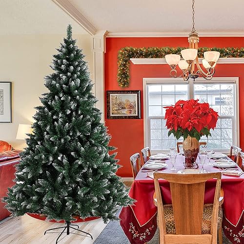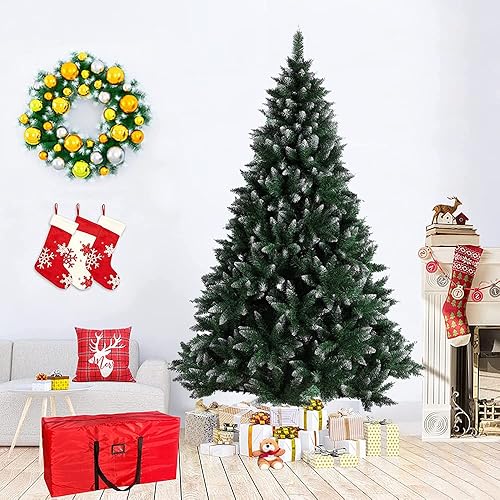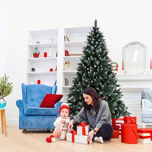 Sapin de Noël Artificiel 180cm, Arbre de Noel avec 660 Pointes de Branche en Forme d’Aiguilles de pin, avec Effet Neige de Noël Vert Décoration Fêtes de Noël PVC, Noel