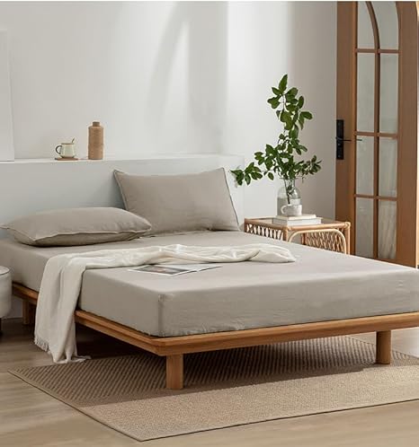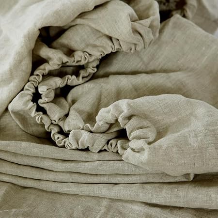 1 Pièce Bedding Drap Housse 120x200cm, 100% Lin Naturel, Bonnet pour 35cm, Confortable et Respirant (Lin, 120x200x35cm)