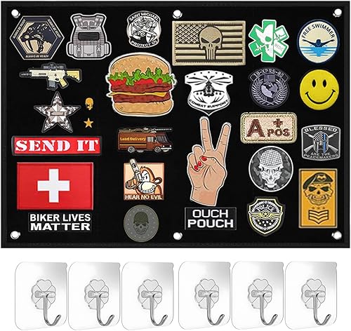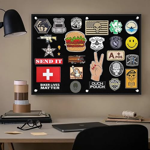 Panneau de Brassage Tactique Militaire, 60 x 45 CM Pliable Tableau Affichage Tactique, Support de Patch Militaire Mural, avec Crochet et pour Suspendre des Badges et des Patchs, Noir
