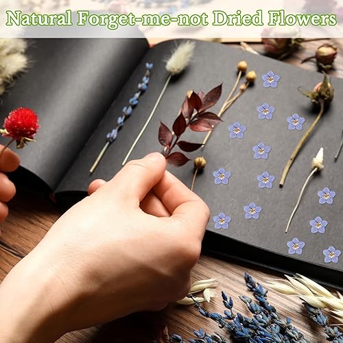 80 Pcs Fleurs Pressées Séchées Naturelles Myosotis Séchés Vraies Fleurs Bleues pour Résine avec Pince à Épiler Coudée pour Fabrication de Bijoux Cartes DIY Décor d'Ongles Artisanat