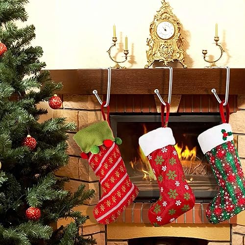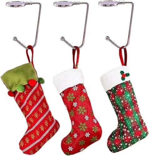 Lot de 4 supports de chaussettes de Noël en métal avec crochets pour suspendre les chaussettes de Noël pour la maison, la cheminée, la décoration de fête de Noël