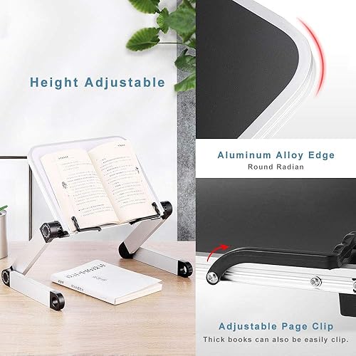 Pupitre Livre, Book Holder Stand Metal, Book Rest Pliable Portable, Support Livre Recette Cuisine, Support Lecture Porte Livre Bed Bureau Lit, Support Lecture Tablette, Hauteur et Angle Réglable, Noir