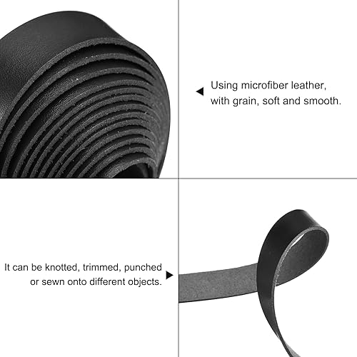 sourcing map Sangles en Cuir pour l'Artisanat, Bandes de Cuir Plat de 3/4 Pouce de Large pour Projets d'Artisanat DIY (1,5 mm d'Épaisseur, 78,7 Pouces de Longueur, Noir)