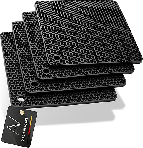 AVANA Lot de 4 dessous de plat en silicone de qualité supérieure - Multifonctionnels - Résistants à la chaleur - Passent au lave-vaisselle - Antidérapants - Motif nid d'abeille - Noir