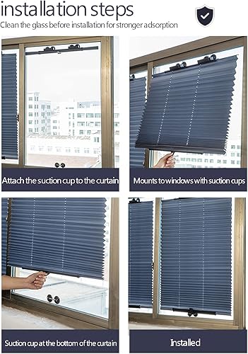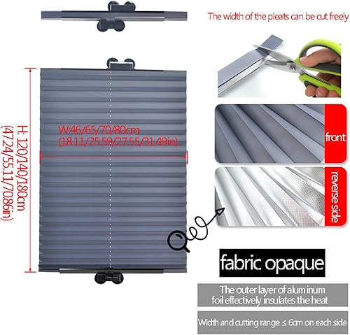 SHUITUKOUU Store Occultant avec Ventouses, Store Plissé, Rideau D'ombrage Isolant De Protection Solaire, pour Salle De Bain De Balcon De Voiture, sans Perçage,W80*H180cm/W31.49*H70.86in