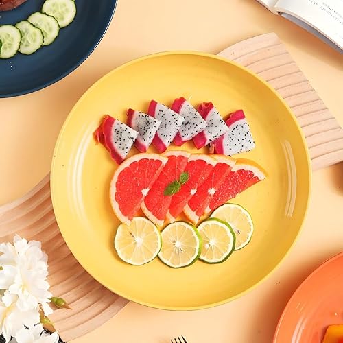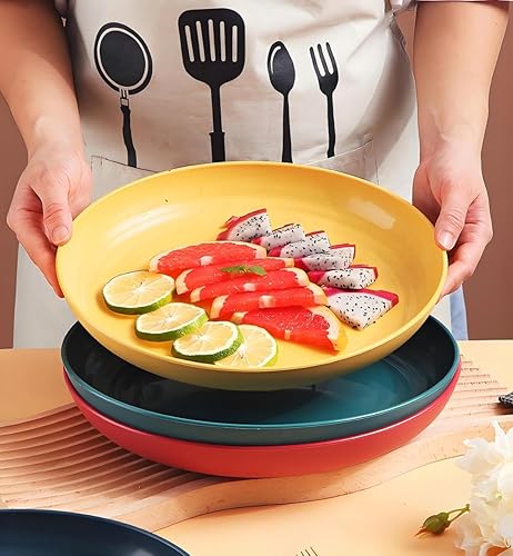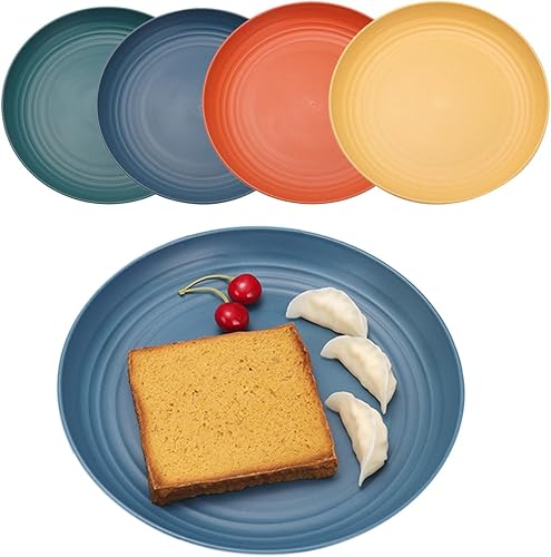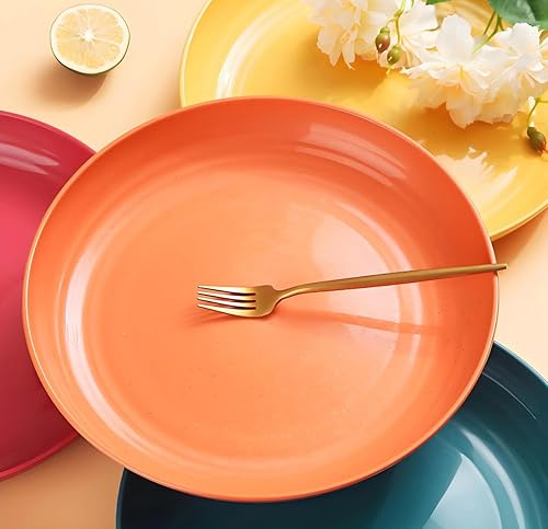LJYING Lot de 4 assiettes plates en plastique de 22,9 cm, réutilisables et incassables, sans BPA, passent au lave-vaisselle et au micro-ondes, légères, couleurs mélangées (couleur foncée)