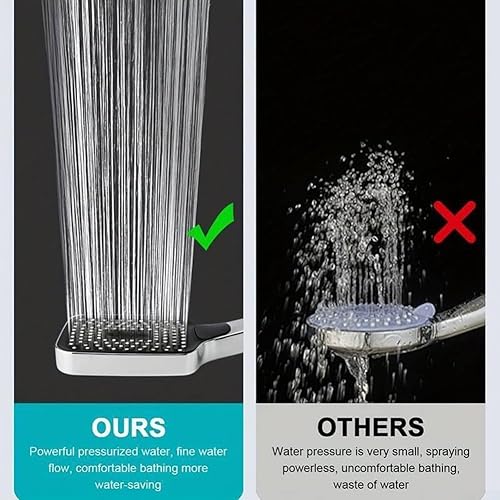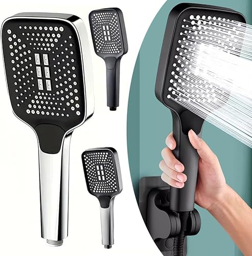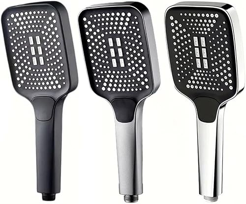 Pommeau de douche à 3 modes haute pression chromé pour salle de bain - Économie d'eau - Fonction impulsion de pluie - Avec interrupteur marche/arrêt - Matériau ABS (argenté)