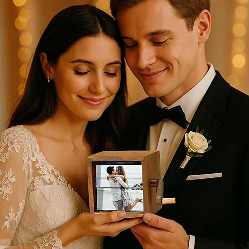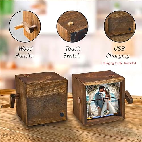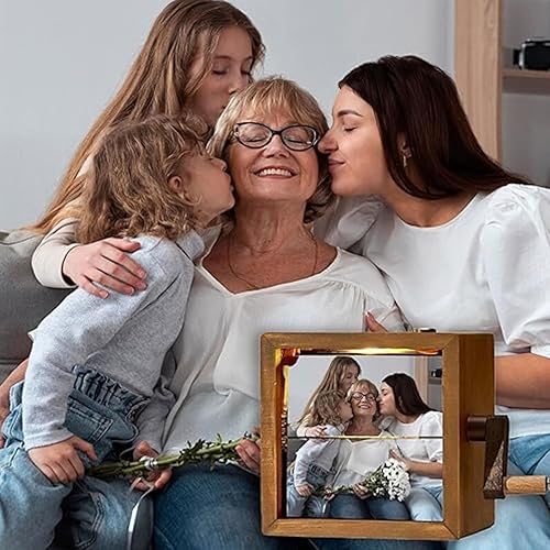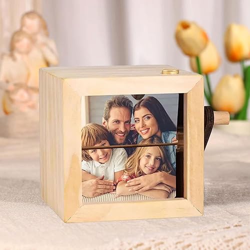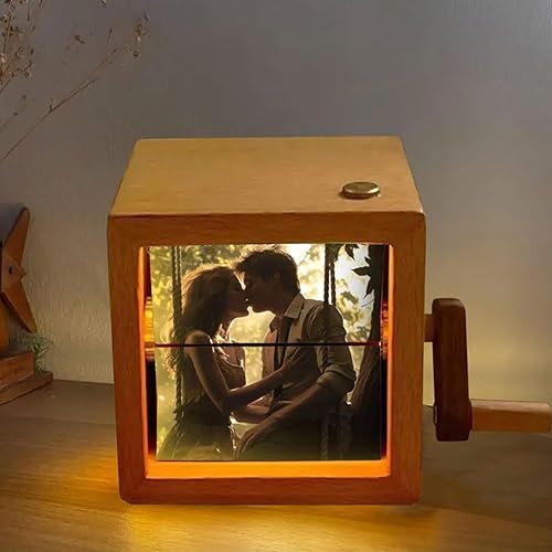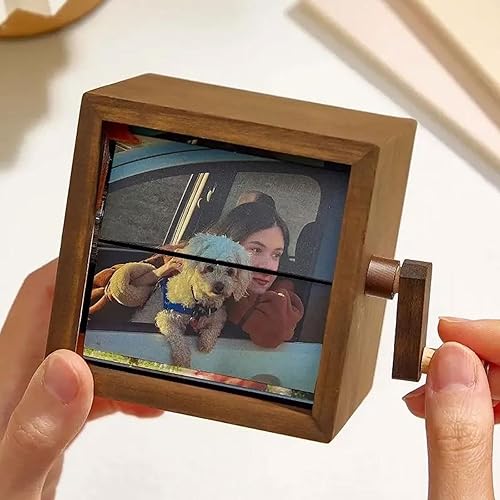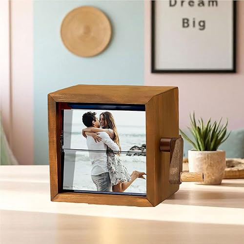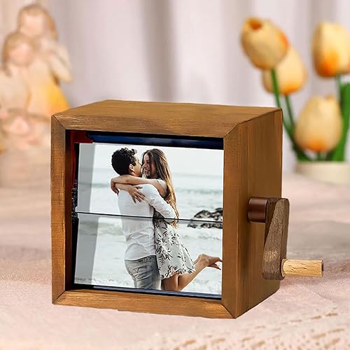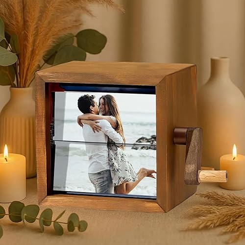 Machine d'animation de Cadre Photo Personnalisé,Boîte à Flipbook Mécanique à Manivelle avec Lumière,Cadeau pour Couples,Famille et Anniversaires (8/16 Photos)