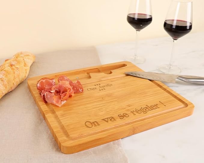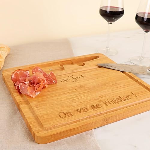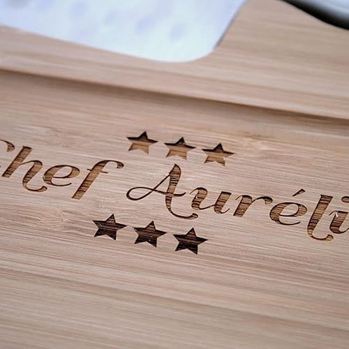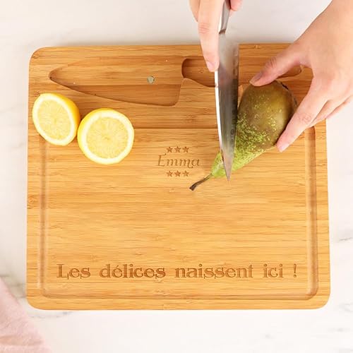 CADEAUX.COM - Planche à Découper Personnalisable en Bambou + Couteau en Acier - Prénom et Message - Idée Cadeau Personnalisé Avec Prénom et Message - Fête des Grands-Pères - Cadeau Noel