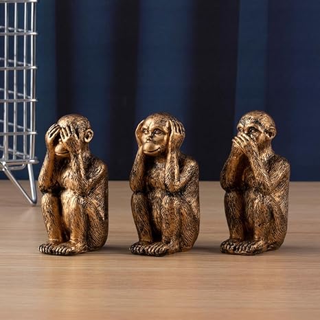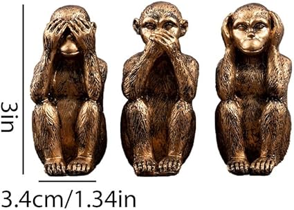Jumyee Lot de 3 statues de singes de la sagesse, n'entendez pas le mal, ne voyez pas le mal, ne parlez pas du mal, décoration d'intérieur, de bureau, figurines de jungle, cadeau (bronze)