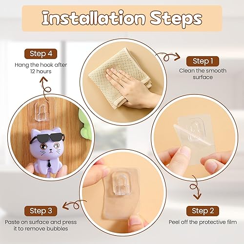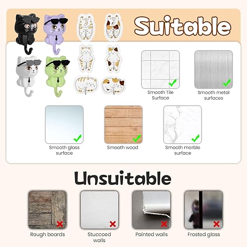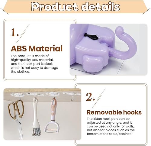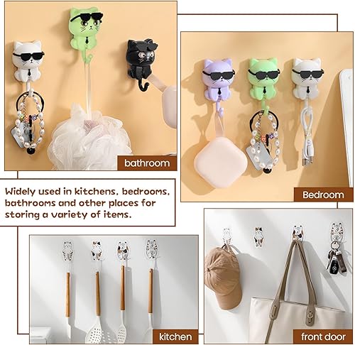VGECEE 10 Pcs Crochet à Clé Chat Étanche, Crochet Adhésif Mural Mignon, Attache Torchon Cuisine Multi-formes, Accroche Autocollant Enfant sans Perçage, pour Cuisine Maison Vêtement Serviette