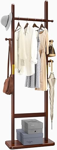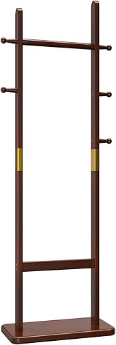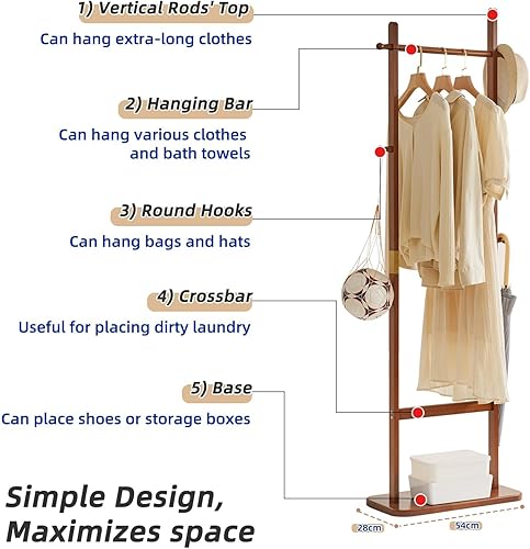 Aibiju Portemanteau sur Pied 180 cm avec Base Rectangulaire et 5 Crochets, Portant à Vêtements en Bois, Porte Vêtement pour Sacs à Main, Vêtements, Foulards Dans la Chambre, (Blanc), Yd-201
