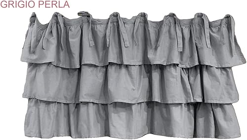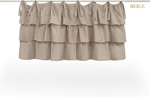 AT17 Rideau Cantonnière avec Trois Volants Shabby Chic et Romantique - Trois Volants - 140x60 - Blanc