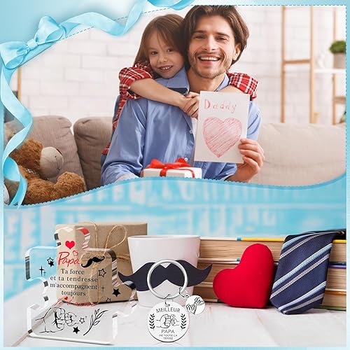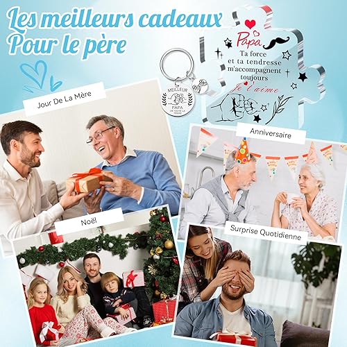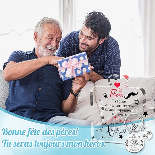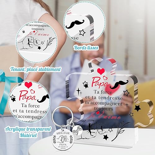 Kinwers Cadeau FêTe Des PèRes, 2 pièces Personnalisé Homme Original IdéE Cadeau Beau Pere,Cadeau Anniversaire Papa Acrylique Et Porte-CléS