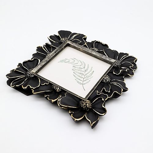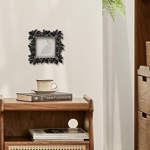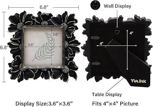 YULINK Petit cadre photo vintage 10,2 x 10,2 cm, petit cadre photo carré orné blanc antique pour table et affichage mural, motif floral rétro, décoration d'intérieur, galerie de photos à l'ancienne
