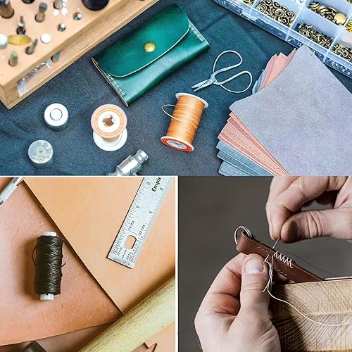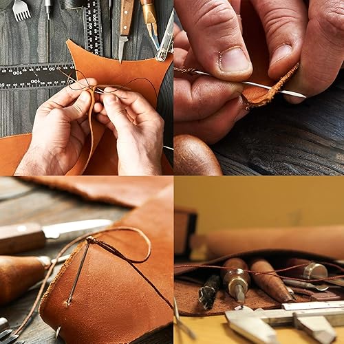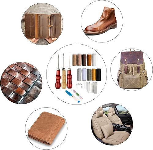 Lot de 32 outils de couture pour cuir - Outil de bricolage - Fil ciré - Kit d'outils de couture à la main pour cuir, rembourrage, tapis, toile, accessoires de couture DIY
