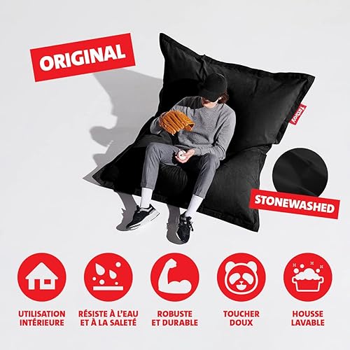 Fatboy® The Original Stonewashed Pouf Poire Bean Bag/Coussin/Fauteuil/canapé d'intérieur XXL |Noir| 180 x 140 cm