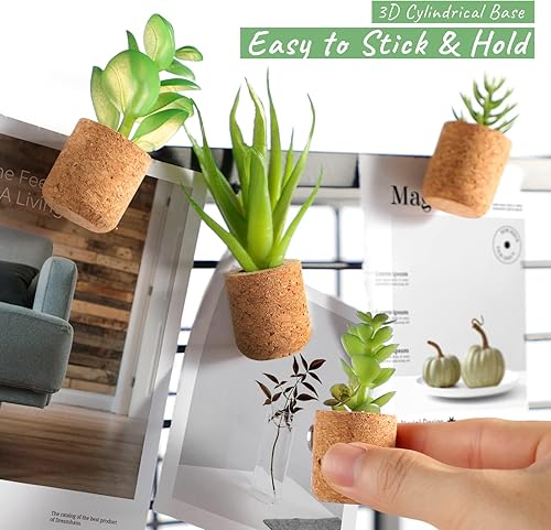 JUSTDOLIFE Aimants de réfrigérateur pour Plantes succulentes artificielles - Aimants de réfrigérateur pour Plantes succulentes en Pot - Autocollants Mignons pour Tableaux magnétiques, réfrigérateur