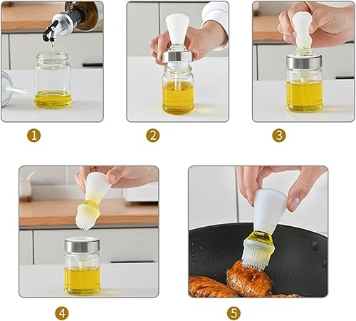RoseFlower Bouteille d'huile avec Pinceau à Badigeonner en Silicone, Brosse en Silicone pour Bouteille d'huile en Verre de Cuisine, Brosses à Huile pour Cuisine, Barbecue, Pâtisserie