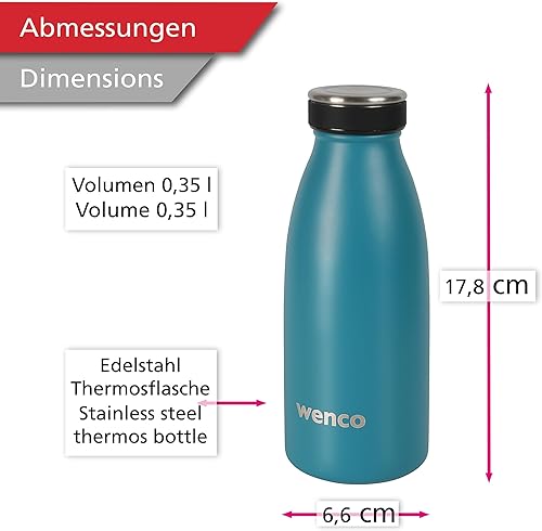 wenco Gourde en acier inoxydable bleu carribean - 350 ml - Idéale pour les enfants - Sans BPA - Anti-fuite - Convient pour les boissons gazeuses - Petite bouteille isotherme pour le sport, l'école, le