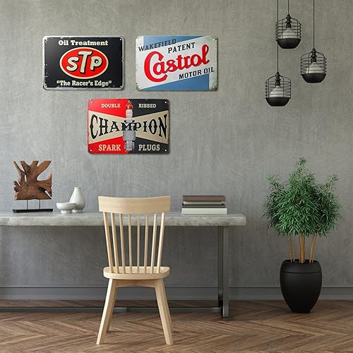 Lot de 5 plaques en métal rétro pour garage - 20 x 30 cm - Poster en métal - Pour atelier - Plaque murale à essence - Plaque murale en métal - Pour moto - Décoration de voiture