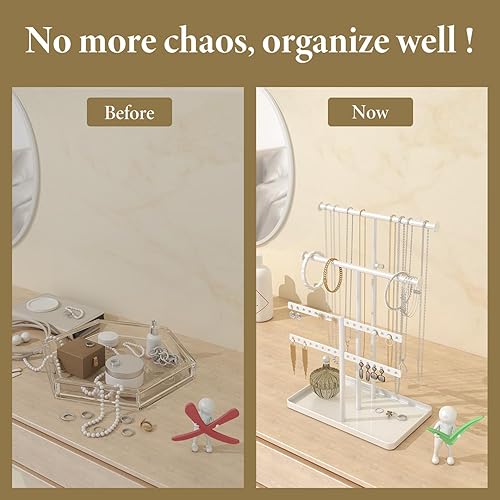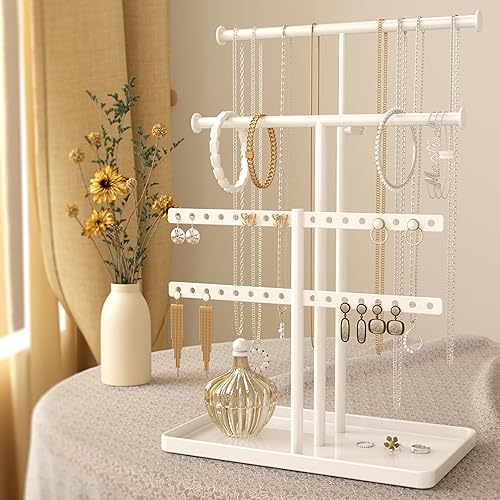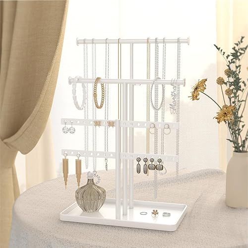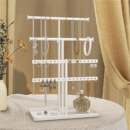 Josmimic Présentoir à Bijoux Porte-Chaînes Support de Bijoux : Grande Capacité Porte-Collier Réglable - Rangement Stable de Bijoux pour Boucles d'oreilles, Bracelets, Montres, Blanc