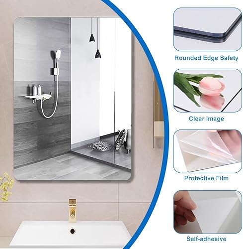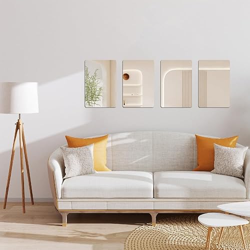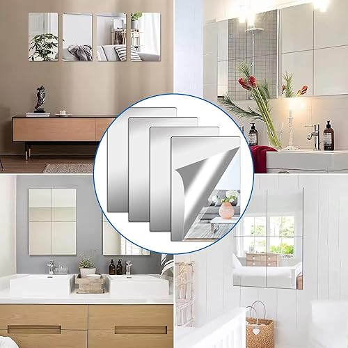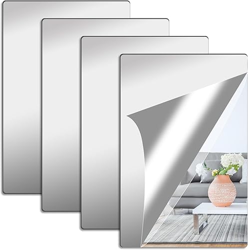 4 Pièces Acrylique Miroir Adhésif Porte 20x25cm Flexible Miroir Acrylique Adhésif, Miroir Mural Autocollant, Miroir Autocollant, Miroir Adhesif Mural pour Salle de Bain, Chambre, Porte