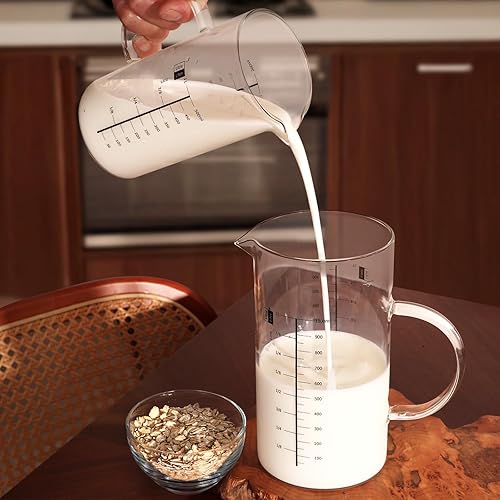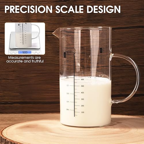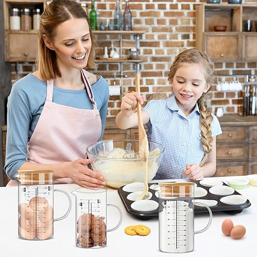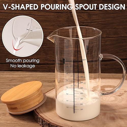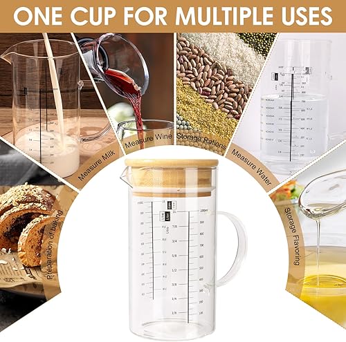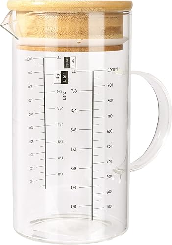 Aevcvok Verre Doseur 1L, Transparent Verre Mesureur Cuisine avec Couvercle en Bois, Récipients Gradué en Verre, 1000ML Tasse à Mesurer Verre Gradué Cuisine, Idéal pour Cuisine,Pâtisserie et Stockage