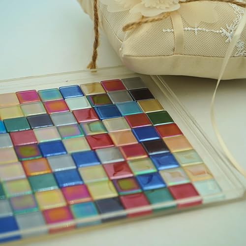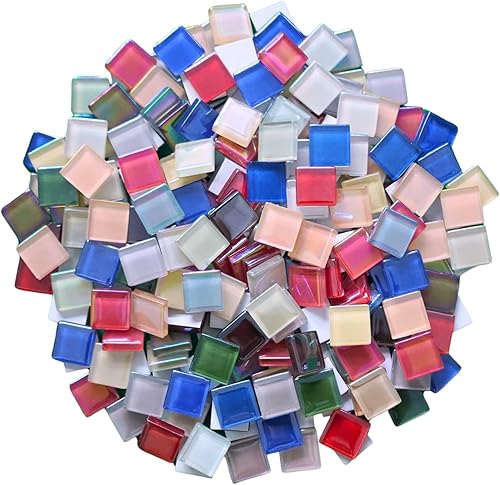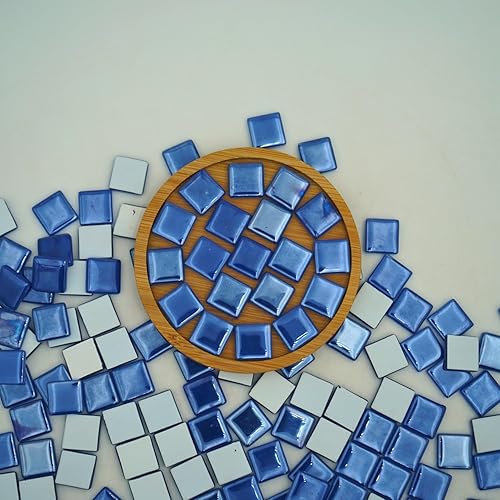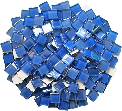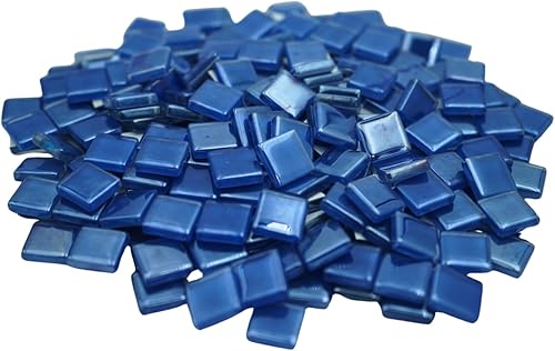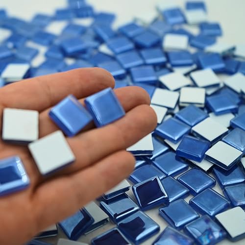 Yuvori Carreaux de mosaïque carrés irisés en verre - 1,5 cm - 0,5 kg - Bricolage - Cadres photo, baignoires, sous-verres, vases - Décoration d'intérieur (bleu)