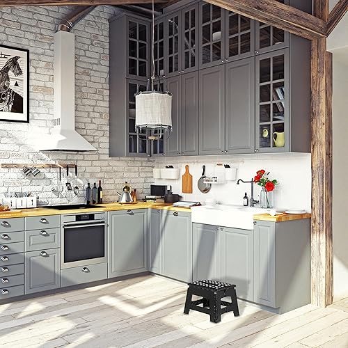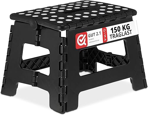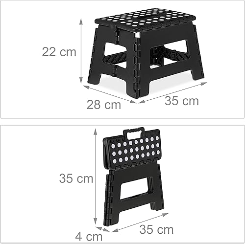 Relaxdays Tabouret Bas Pliable, 22,5 cm de Haut, 1 Marche, Jusqu’à 120 kg, Plastique antidérapant, escabeau Cuisine,Noir