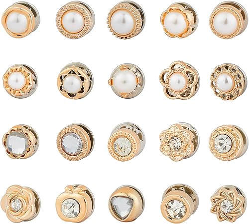 NBEADS 40 Pcs 20 Styles Chemise Broche Boutons, Coudre en Faux Boutons Imitation Perle Strass Boutons de Broche de Sécurité pour Vêtements de Bricolage Cardigan Robe Fournitures de Décoration