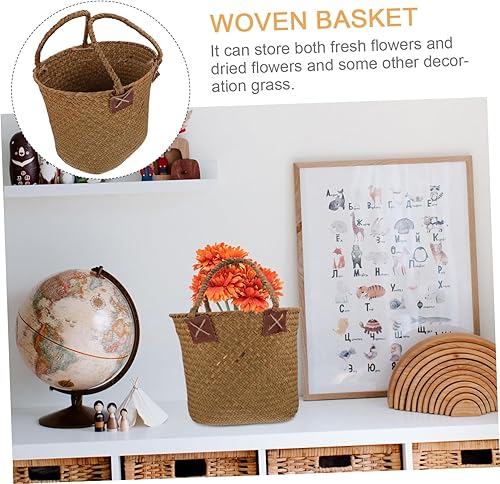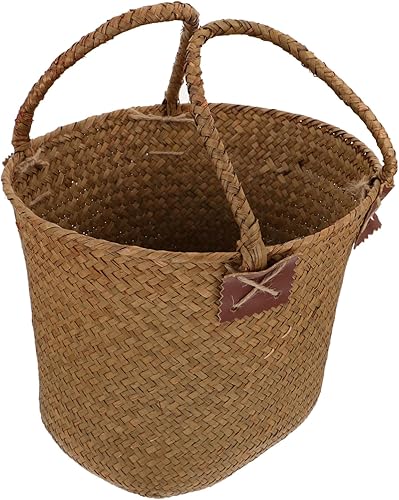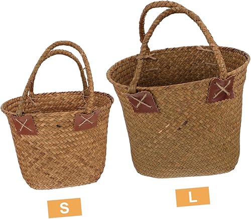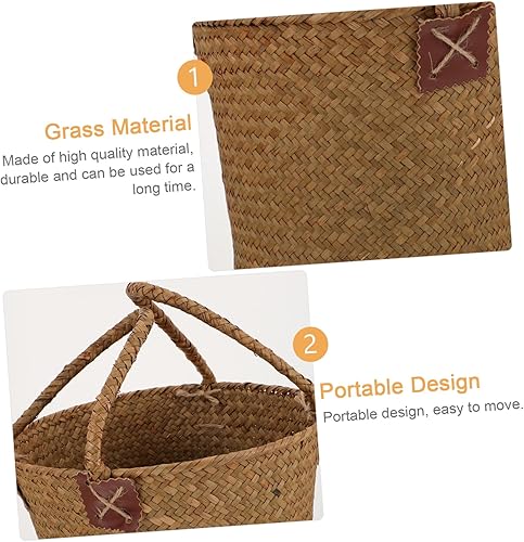 HEMOTON 1 Pièce Panier De Paille Osier Petit Corbeille Jonc De Mer Tissé Vert Décor De Rotin Poignée Paniers Panier De Jardin Panier En Herbe Tressée Panier De Fleurs Tressé