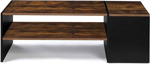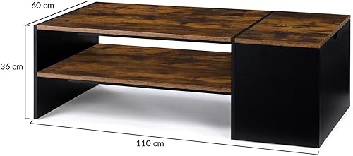 IDMarket - Table Basse Bar contemporaine rectangulaire IZIA avec Coffre Bois Effet Vieilli et Noir