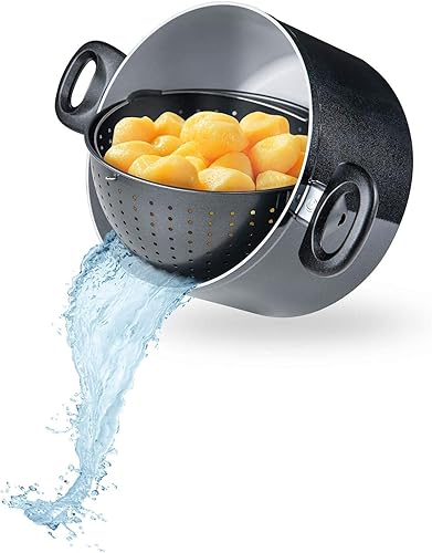 Genius Cerafit Magic Pot Set de casseroles 24 cm – Casserole de 6,4 l avec passoire et couvercle en verre pour faciliter la cuisson, égoutter et servir