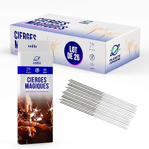 Cierge Magique XXL Géant Modèle 48/70cm, durée 130 Secondes - Lot de 25 - Accessoire de Décoration pour Gateaux Anniversaire Enfant & Adulte, Cierges Magiques étincelante - Catégorie F1