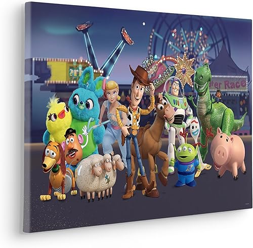 Komar Komar Image sur châssis – Toy Story the Greatest Team, Dimensions : 40 x 60 cm – Image murale pour chambre d'enfant, multicolore