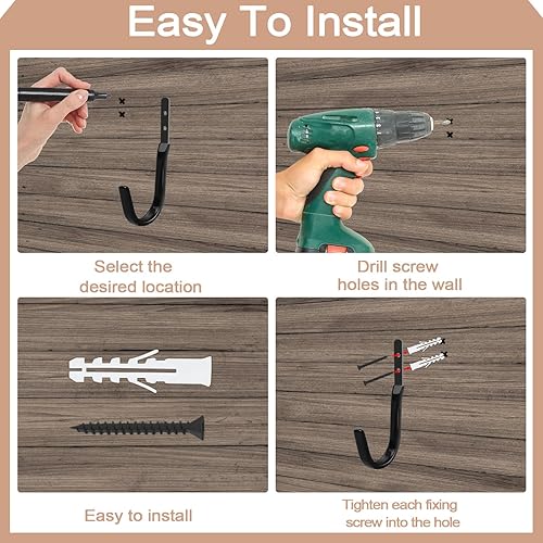 Gicare 4 Pcs Crochet Mural Garage, Crochets Muraux Robustes pour Rangement, Crochet a Visser de Vinyle, Crochets Universels pour l'échelle de l'atelier, les Outils, la Chaise, le Tuyau D'arrosage
